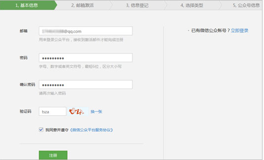 微信公众平号注册时,可根据公众号的用途,具体选择对应的类型,如果企业/媒体/政府/其他组织类型中的信息登记部分资料无法提供,建议您可以选择注册个人类型的公众帐号。